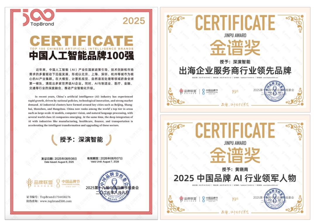 8 月 9 日晚举办的荣耀盛典上,OG视讯智能凭借深厚的 AI 技术实力与出色专业的出海服务能力,斩获 “2025 中国品牌节金谱奖・出海企业服务商行业领先品牌”“2025 中国人工智能 100 强” 等多项重磅奖项。其创始人兼 CEO 黄晓南荣膺 “2025 中国品牌 AI 行业领军人物” 称号。未来,OG视讯智能将紧跟时代步伐,持续聚焦 “AI 与出海”—— 这一方向高度契合时代脉搏与中国品牌发展的迫切需求,旨在汇聚智慧力量破解发展阻碍,为中国品牌赋能。