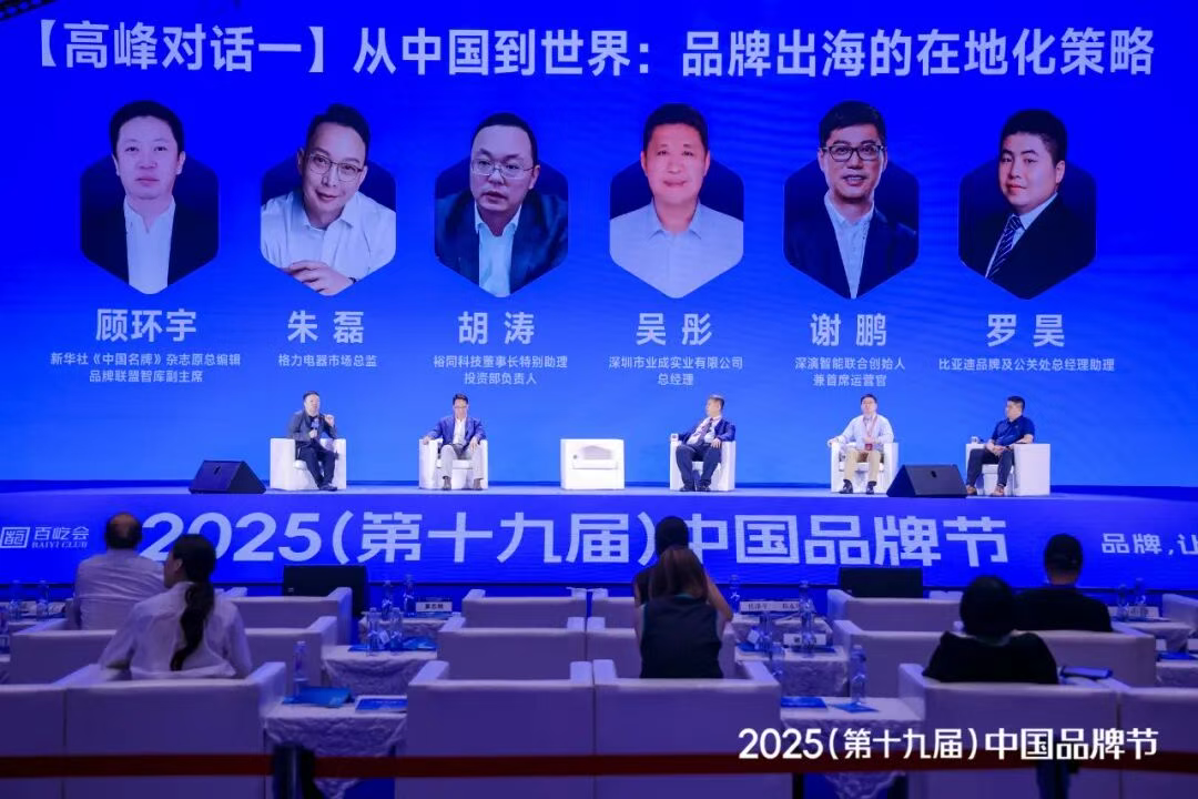 8 月 8 日,被誉为 “中国品牌界奥运会” 的 2025(第十九届)中国品牌节在深圳隆重开幕。本届品牌节以 “AI 与出海” 为主题,吸引政、商、产、学、媒等各界万余人齐聚,共论品牌智能化与国际化发展新路径。作为中国 AI 营销技术领域的代表,OG视讯智能联合创始人兼 COO 谢鹏先生受品牌节组委会之邀,出席峰会主论坛 “品牌出海的在地化策略” 高峰对话。该对话由新华社《中国名牌》杂志原总编辑、品牌联盟智库副主席顾环宇主持,格力电器市场总监朱磊,裕同科技董事长特别助理、投资部负责人胡涛,深圳市业成实业有限公司总经理吴彤,比亚迪品牌及公关处总经理助理罗昊等五位嘉宾共同参与,围绕 AI 驱动的新质生产力变革、跨文化品牌叙事创新及可持续增长的全球布局战略展开深入探讨。